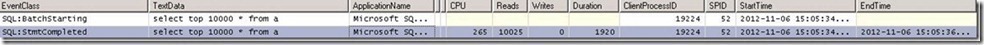 Let us see an example of long waiting query. I have collected profiler trace while executing the query.